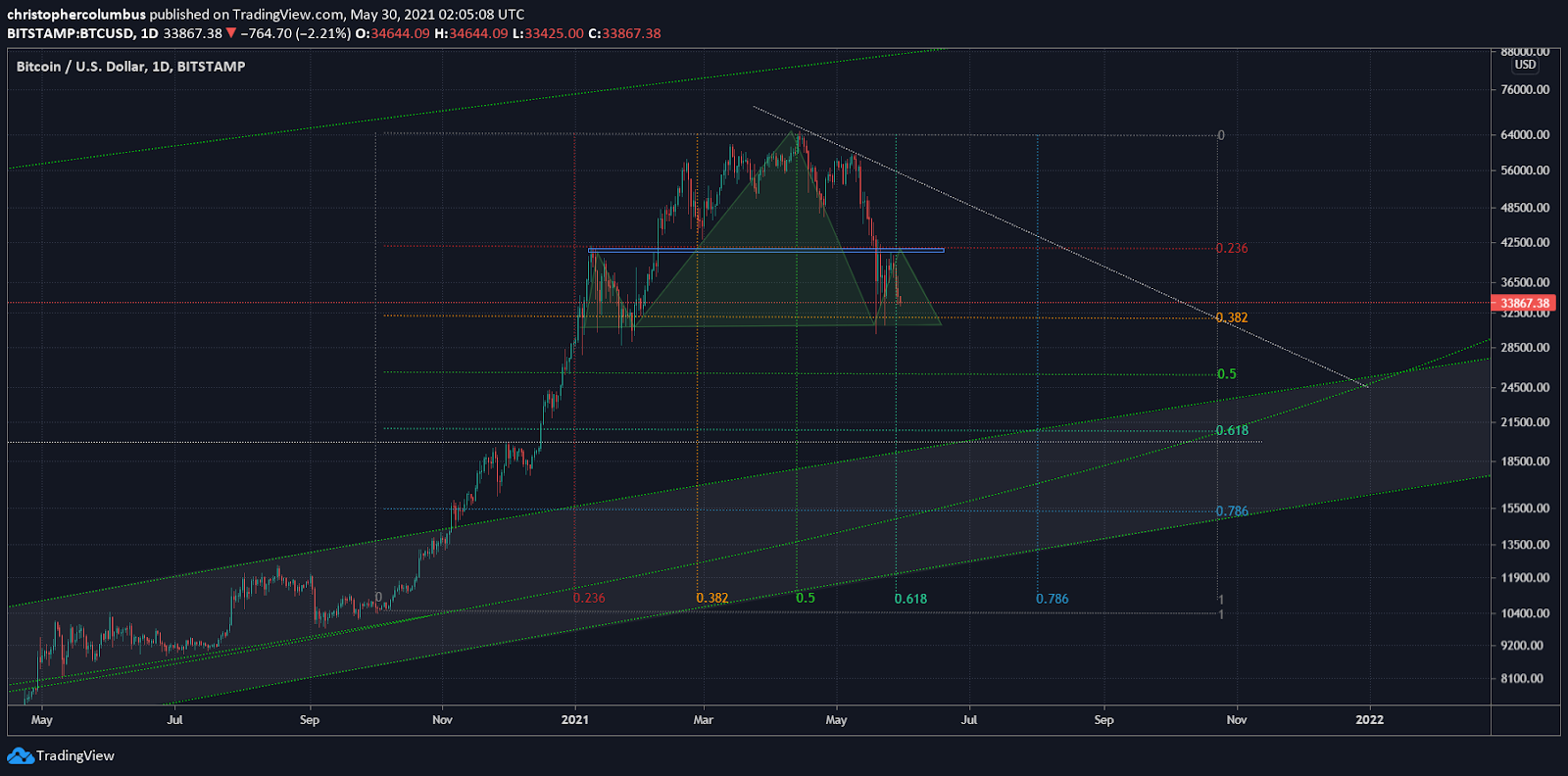 Dave destacou, quando o Bitcoin era negociado a US$60 mil, que o BTC estava formando um canal de baixa a medida que a criptomoeda apresentava dificuldade para subir para novos patamares de preços.