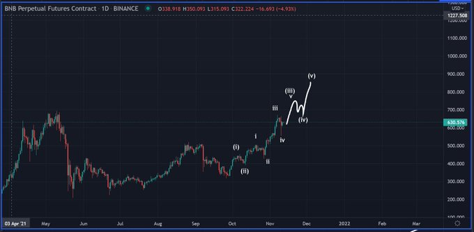 Já, segundo o analista conhecido como Smart Contract, outra criptomoeda que está pronta para superar sua máxima histórica é a Binance Coin (BNB).